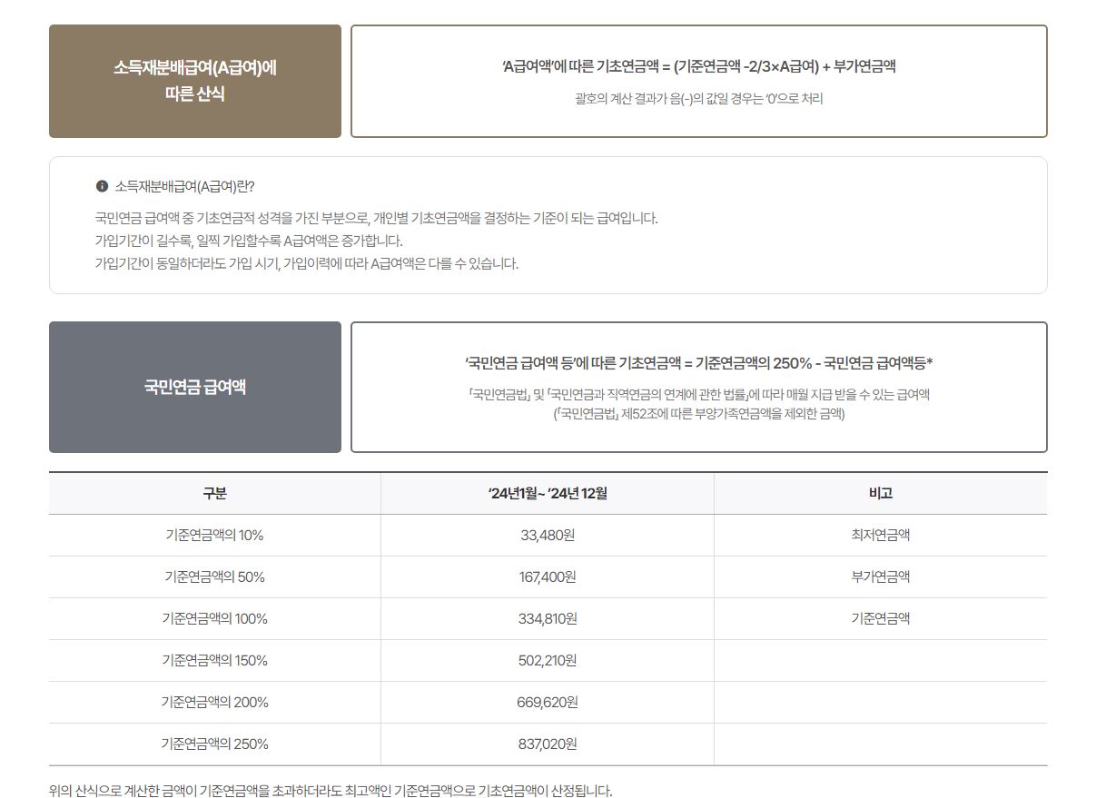 국민연금을 얼마나 받고 있는지 등에 따라 "기준연금액"을 기초로 산정하는 연금액입니다.