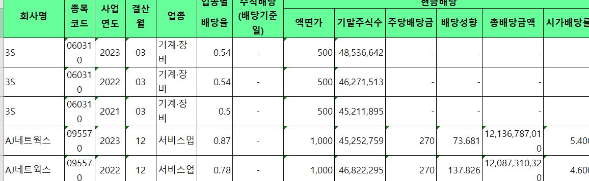 기업이 주주들에게 지급한 배당금의 총액을 말합니다.