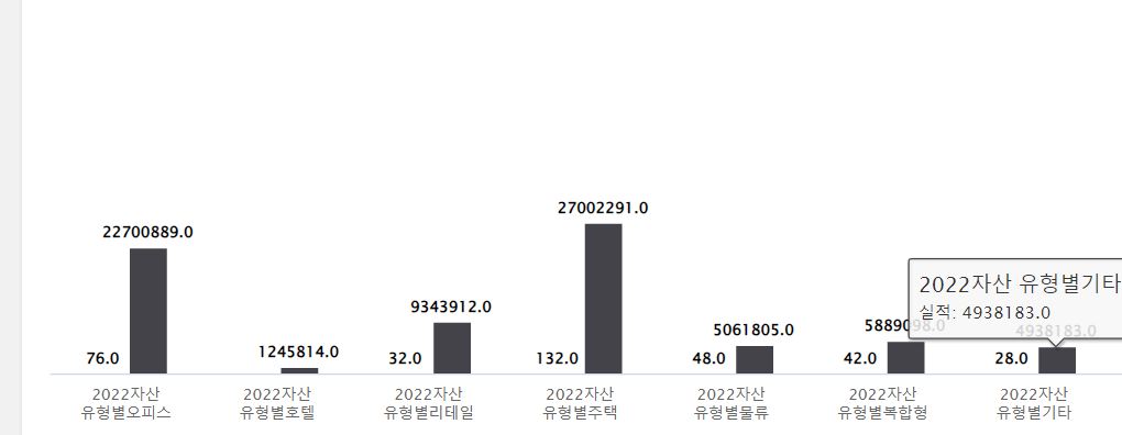 아직 2022년 통계까지만 나와있는데 주택에 가장 많은 투자를 하고, 그다음으로 오피스가 많은 것을 볼 수 있습니다.