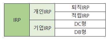 퇴직연금에는 개인형 IRP, 기업 IRP (DB형, DC형)가 있습니다.