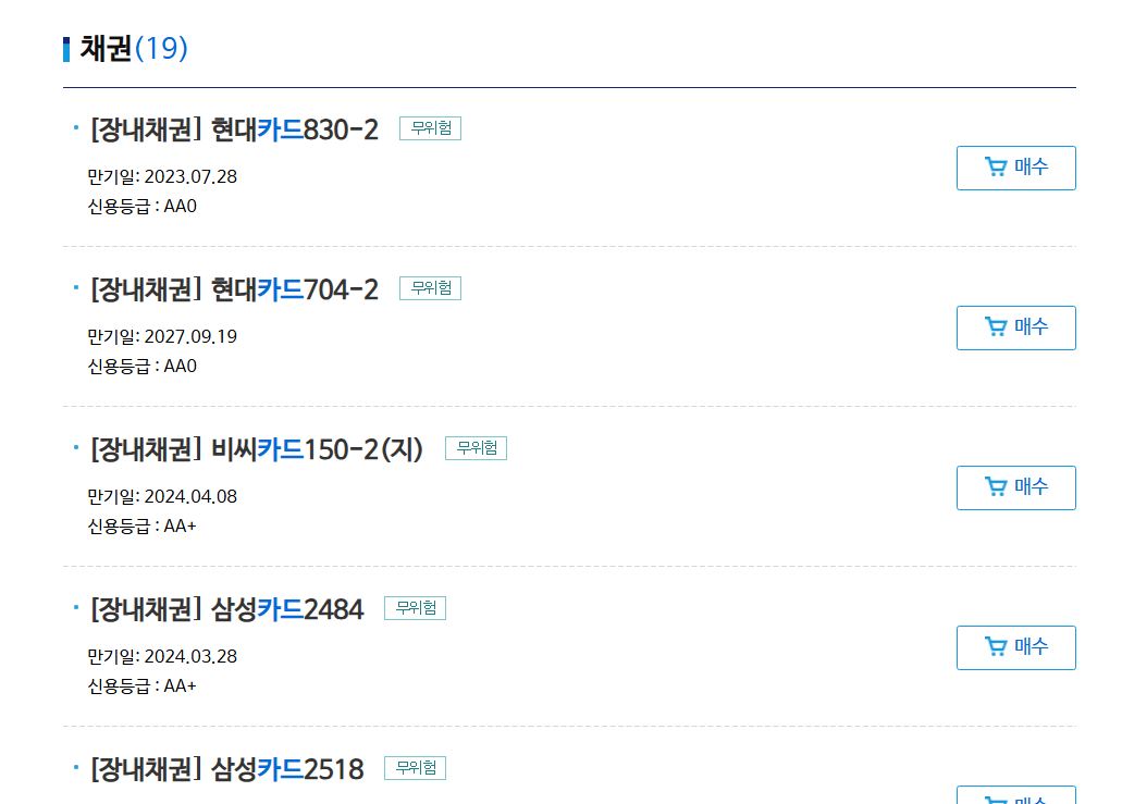 4. 기타 금융채 : 카드사, 캐피탈 등이 발행한 채권