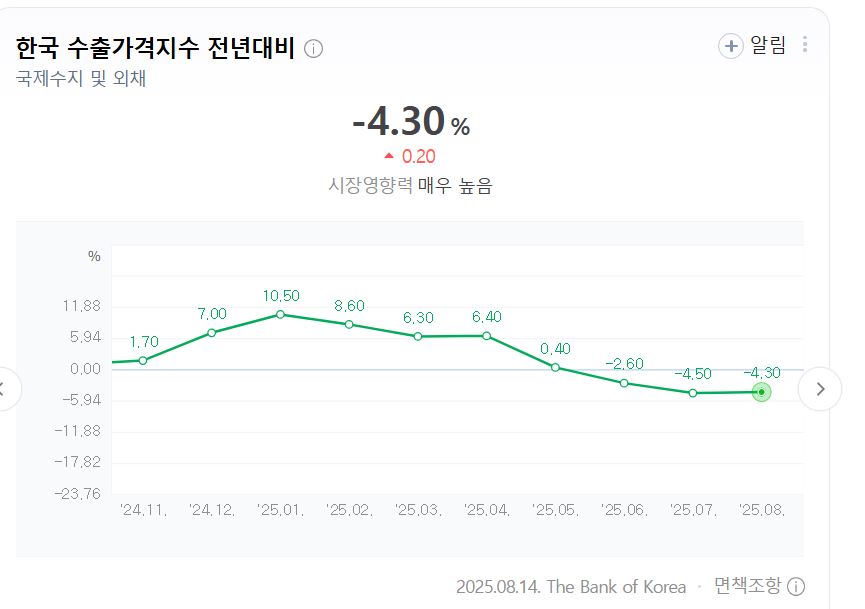 수출물가지수는 수출상품의 가격변동을 측정하는 지표입니다.